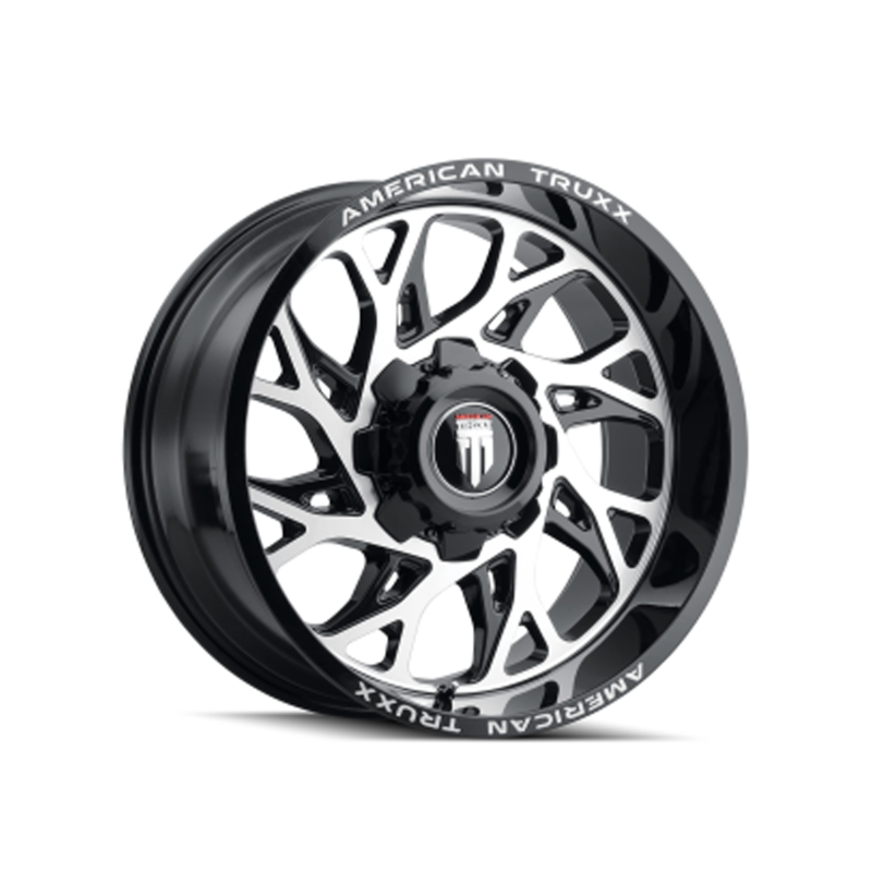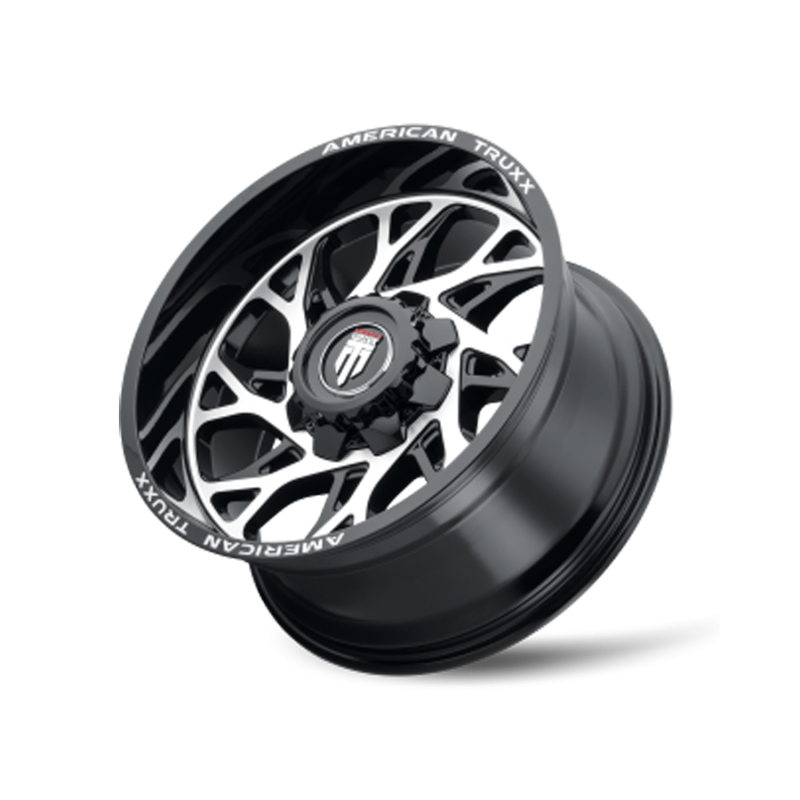 The American Truxx Destiny AT1913 wheels are designed to deliver dependable performance for trucks used in hauling, off-road driving, and commercial transport. Built in one-piece cast aluminum of aircraft grade, the black machined wheels offer strength without too much added weight to the vehicle. It is a reliable choice for the replacement or upgrade of sports vehicles, haulers, and tractor-trailers. The flat face of 8 lug wheels is engineered with a deep lip and split for improved tire hold while its directional spokes distribute the truck load evenly, ensuring speed and stability. For an aesthetic uplift of vehicles, the truck custom wheels are available in a variety of colour finishes from chrome to black. They are designed to hide dust and withstand tough wear when pulled for utility pickup fleets.