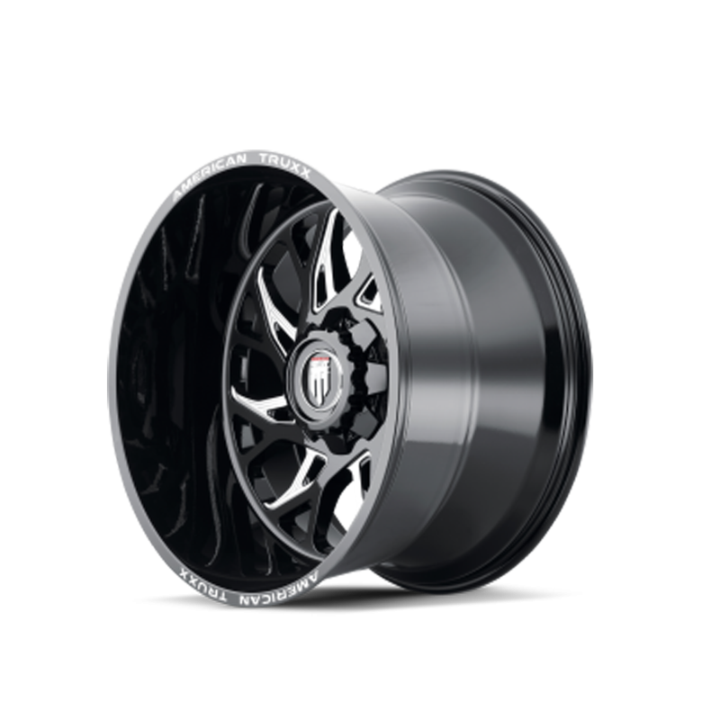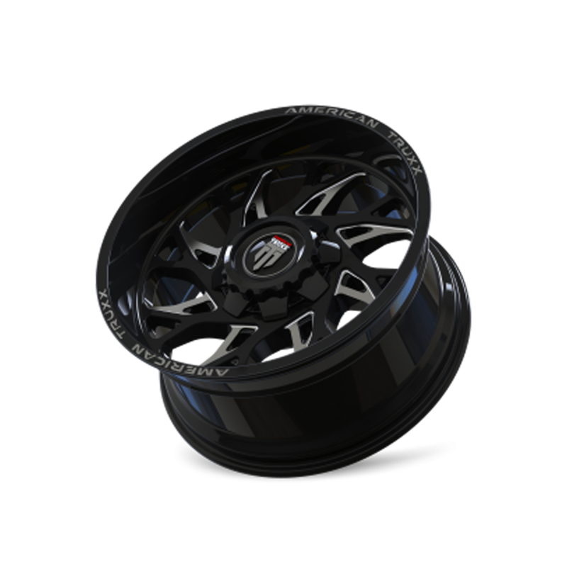 The American Truxx Destiny AT1913 wheels are designed to deliver dependable performance for trucks used in hauling, off-road driving, and commercial transport. Built in one-piece cast aluminum of aircraft grade, the black machined wheels offer strength without too much added weight to the vehicle. It is a reliable choice for the replacement or upgrade of sports vehicles, haulers, and tractor-trailers. The flat face of 8 lug wheels is engineered with a deep lip and split for improved tire hold while its directional spokes distribute the truck load evenly, ensuring speed and stability. For an aesthetic uplift of vehicles, the truck custom wheels are available in a variety of colour finishes from chrome to black. They are designed to hide dust and withstand tough wear when pulled for utility pickup fleets.