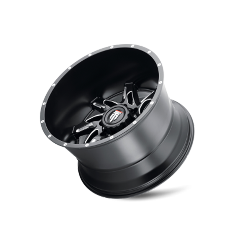 Upgrade your worn-out truck wheel with the AMERICAN TRUXX SPYDER AT183 Wheels, made for on or off-road precision. An innovative combination of scientific engineering and precision technology; the black machined wheels ensure the aesthetics of your vehicle, giving it a new-like look. These 8 lug wheels feature a dynamic mesh-patterned, eight-spoke structure, with rotational curvature and mini-split windows near the center cap. They deliver reliable traction and hold the tire seamlessly, preventing slippage while braking or racing. Available in different finishes, the truck custom wheels provide a versatile upgrade for SUVs, trucks, or haulers. Featuring smooth, deep lip and spot-milling around the outer edge, the truck wheels and tires are dimensionally fit for compatible tire and OEM parts.