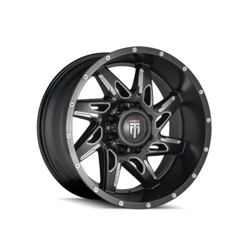 Upgrade your worn-out truck wheel with the AMERICAN TRUXX SPYDER AT183 Wheels, made for on or off-road precision. An innovative combination of scientific engineering and precision technology; the black machined wheels ensure the aesthetics of your vehicle, giving it a new-like look. These 8 lug wheels feature a dynamic mesh-patterned, eight-spoke structure, with rotational curvature and mini-split windows near the center cap. They deliver reliable traction and hold the tire seamlessly, preventing slippage while braking or racing. Available in different finishes, the truck custom wheels provide a versatile upgrade for SUVs, trucks, or haulers. Featuring smooth, deep lip and spot-milling around the outer edge, the truck wheels and tires are dimensionally fit for compatible tire and OEM parts.