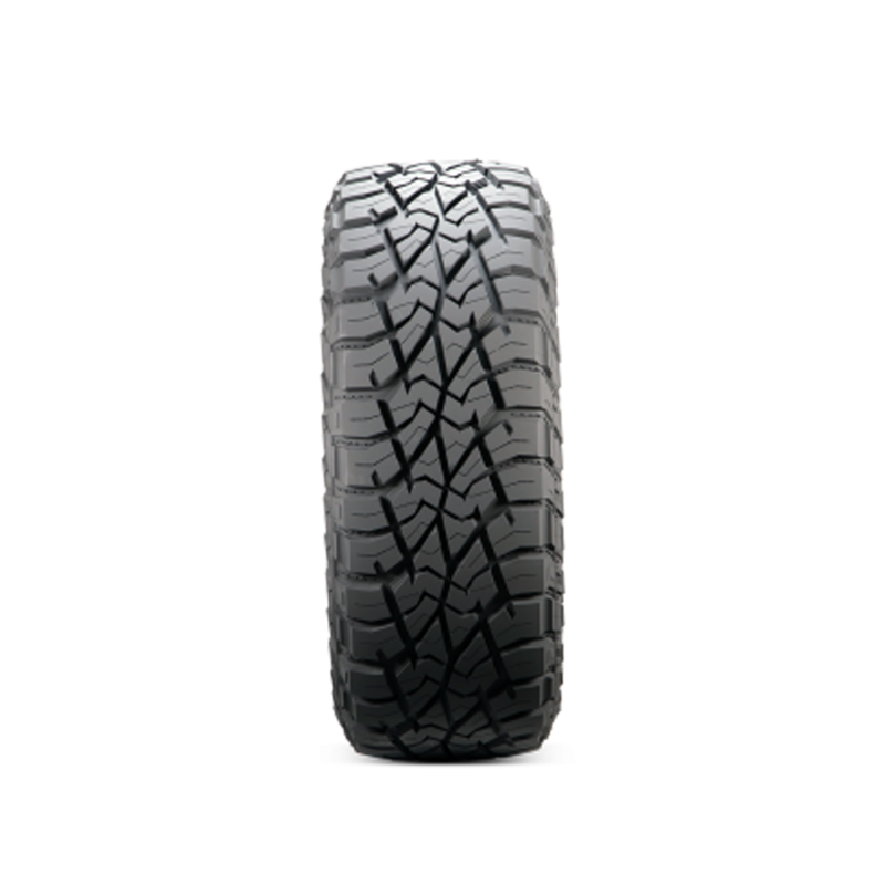 The AMP Terrain Attack R/T Tire is manufactured for the true off-roaders looking to make their vehicle like new. With its rugged yet innovatively designed pattern, the rugged terrain tire delivers exceptional performance in the toughest conditions. It helps maintain a smooth, quiet ride on the highway with increased road contact and minimized road vibration. Its advanced pocketed block tread pattern features a wide contact center patch for increased surface coverage, ensuring a finer grip for roadies. With numerous gripping edges and staggered sidewalls, the all-terrain tires boost off-road traction with load range E, and supports load speed rating 109Q for successfully crossing bumpy roads. The all terrain off road tires protects against abrasions in rocky or muddy environments, extending the lifespan and functionality of the vehicle. The stone ejector channels of the tire keep debris and mud away, preventing slippage and clogging of the treads. The top rated all terrain tires help drivers maintain consistent braking control in extreme weather, whether they are crawling over rocks, cutting through mud, or cruising the freeway.