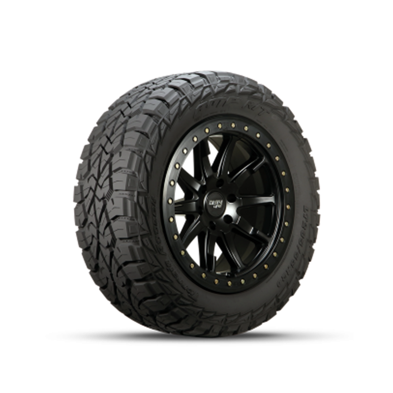 The AMP Terrain Attack Rugged Terrain Tire is manufactured for the true off-roaders looking to make their vehicle like new. With its rugged yet innovatively designed pattern, the rugged terrain tire delivers exceptional performance in the toughest conditions. The all-terrain truck tire helps maintain a smooth, quiet ride on the highway with increased road contact and minimized road vibration. Its advanced pocketed block tread pattern features a wide contact center patch for increased surface coverage, ensuring a finer grip for roadies. With numerous gripping edges and staggered sidewalls, the replacement tire boosts off-road traction and can also withstand boulder punctures. It protects against abrasions in rocky or muddy environments, extending the lifespan and functionality of the vehicle. The stone ejector channels of the heavy-duty truck tires keep debris and mud away, preventing slippage and clogging of the treads. The all-terrain tires help drivers maintain consistent braking control in extreme weather, whether they are crawling over rocks, cutting through mud, or cruising the freeway.