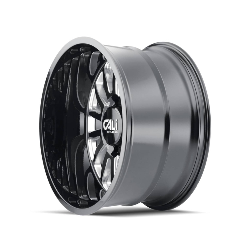 The CALI OFF-ROAD SUMMIT DUALLY FRONT 9110 Gloss Black Milled blends eye-catching style with the toughness required for serious truck performance, making it a standout choice for dually enthusiasts.