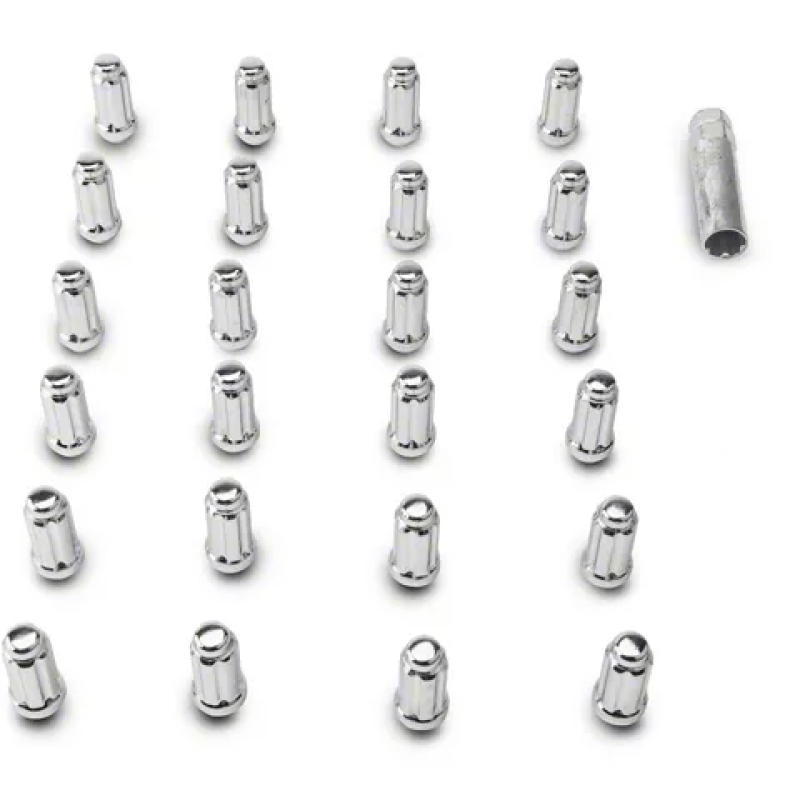 Affordable Insurance. Whether you have perfectly mint factory rims or sleek aftermarket wheels, a set of chrome spline lug nuts are a must-have for peace of mind and as protection against theft.