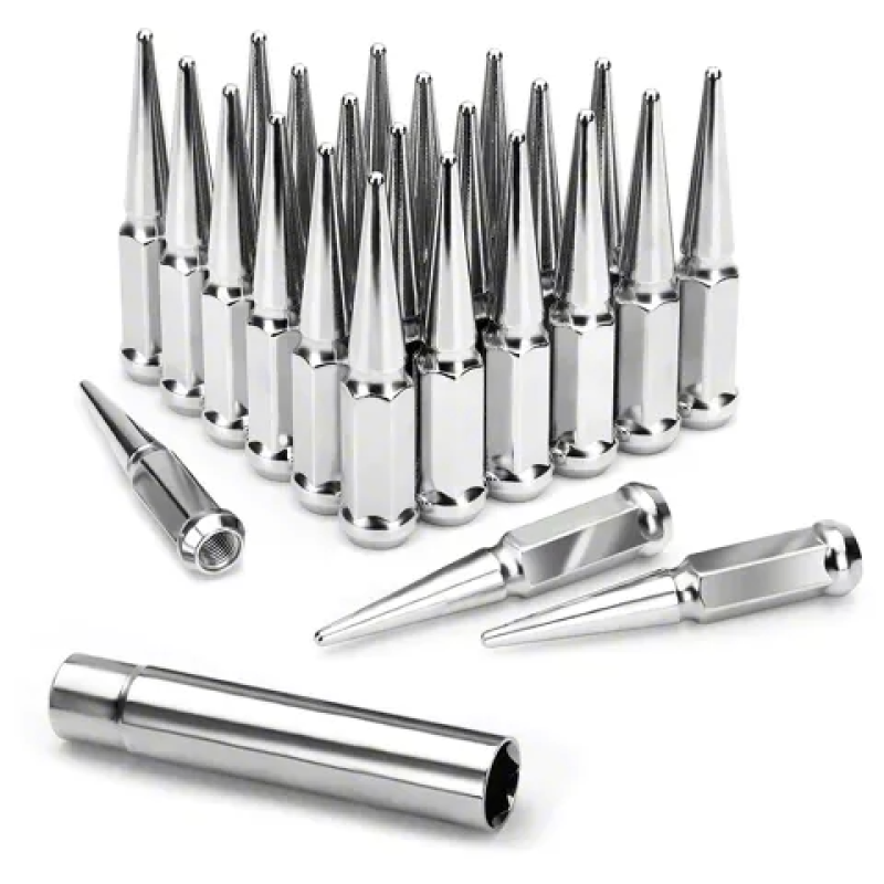 Chrome Spiked Lug Nuts Set M14x1.5, 32-Piece | Fits 2007-2025 Silverado 2500 HD | Heavy Duty Custom Wheel Lug Nut Kit