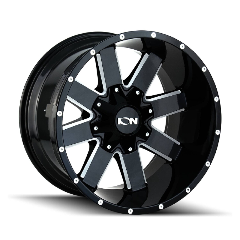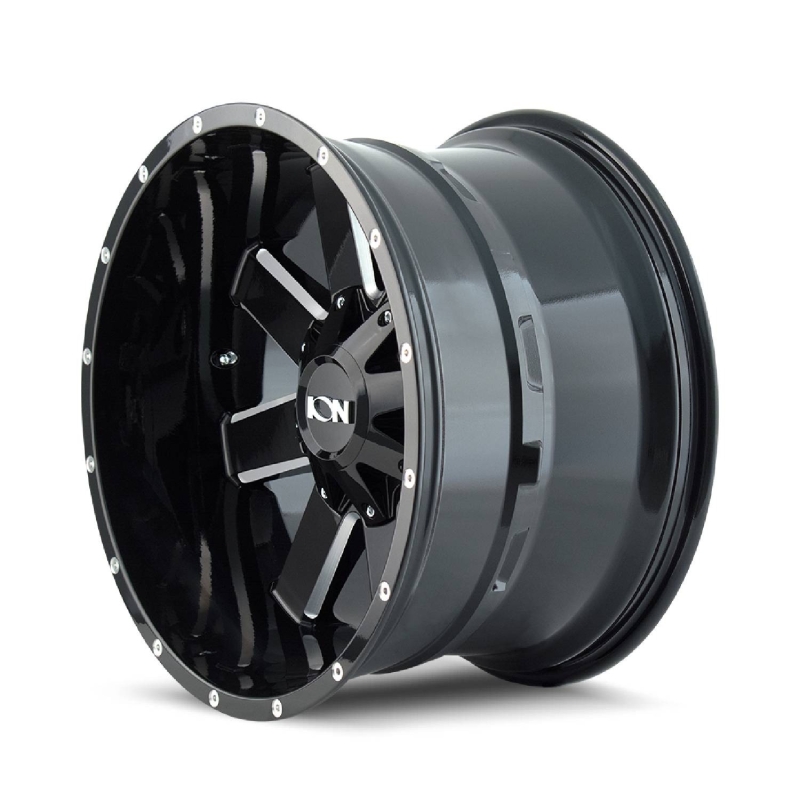 The ION 141 wheel combines aggressive styling with durable performance for trucks and SUVs. Its gloss black finish with milled accents adds a bold, modern look, while the 17x9 size and 18mm offset provide a wide, commanding stance. Designed for vehicles with 6-135 or 6-139.7 bolt patterns, the ION 141 delivers strength and style both on-road and off-road.