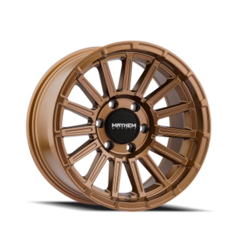 The Mayhem Granite 8309 in Satin Bronze combines bold styling with off-road strength. Its aggressive multi-spoke design paired with a premium bronze finish makes it stand out on and off the road. Designed to handle rugged terrains while maintaining style on city streets, the Granite 8309 is the perfect upgrade for adventurers who demand both performance and aesthetics.
