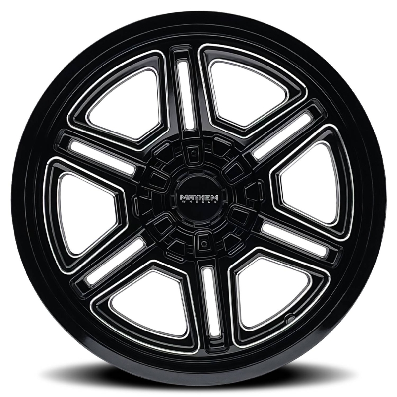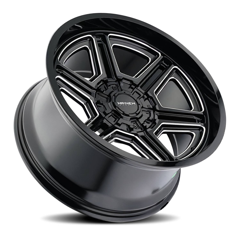 The Mayhem Hermosa 8117 combines aggressive styling with uncompromising strength, making it a perfect choice for trucks and SUVs. Featuring a black milled finish, this wheel adds a bold and modern edge while withstanding rugged terrain.